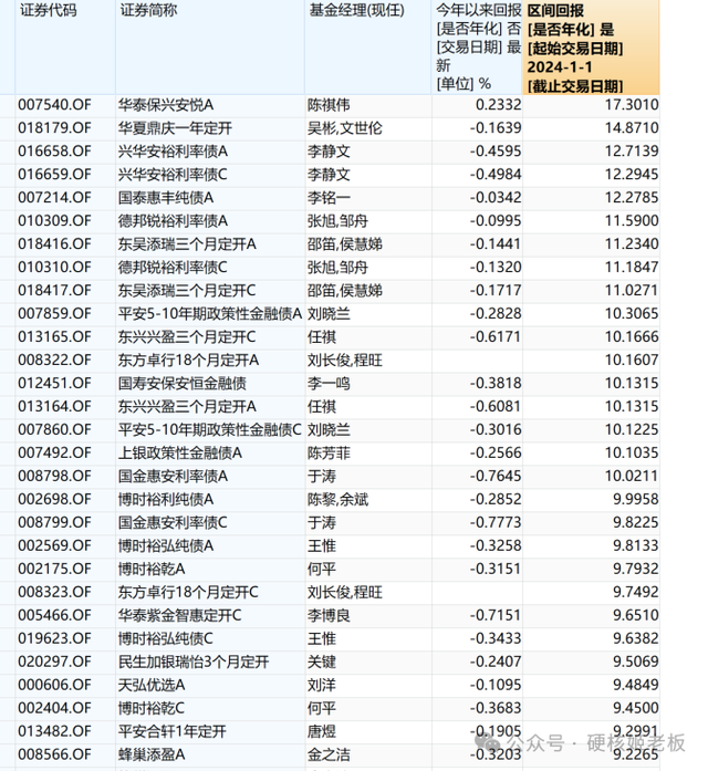看了一眼去年涨幅较大的公募基金,几个网红搞长债的目前回撤控制的还行,你们的华子,现在为止竟然还是正数……